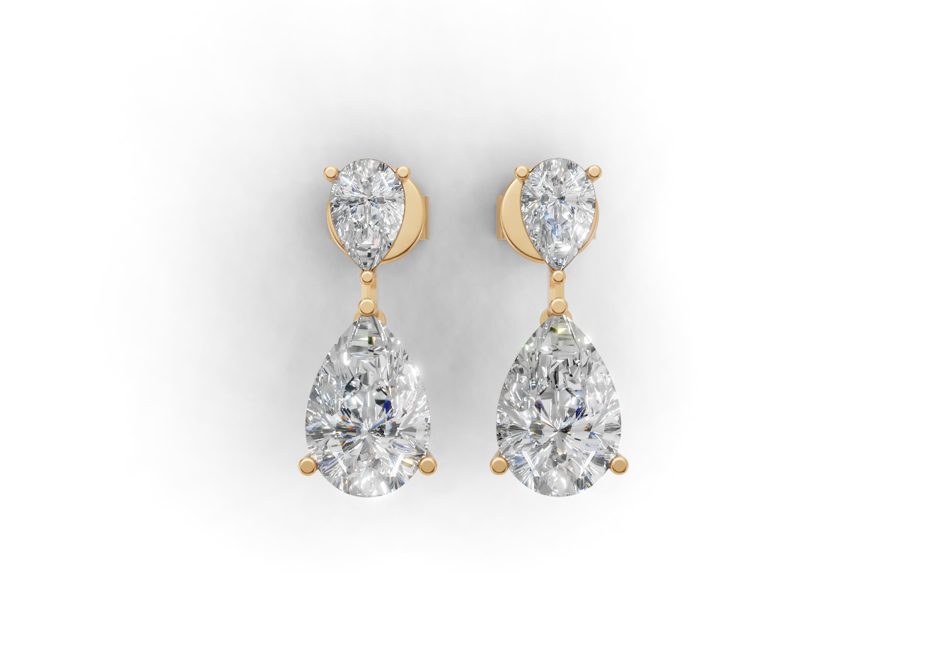 18K Gold Pear Diamond Earrings