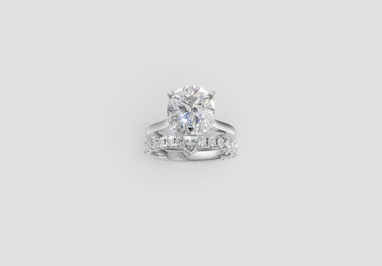 A dazzling pear and round diamond ring set in solid 18K gold, combining elegant curves with brilliant sparkle for a statement of timeless luxury.