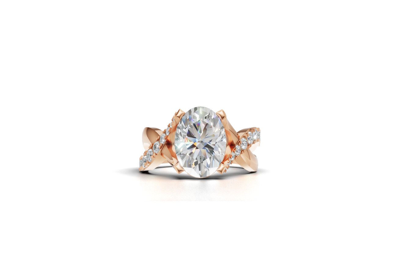 18K Gold twisted Pave Oval Solitaire Ring