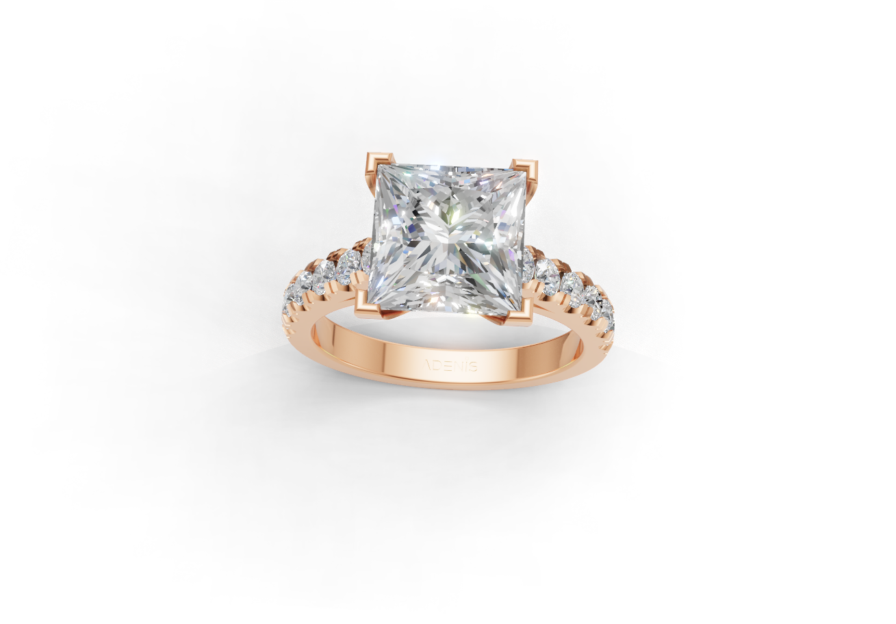 18K Gold Princess Cut Solitaire Pavé Engagement Ring